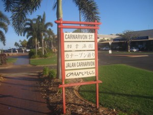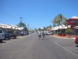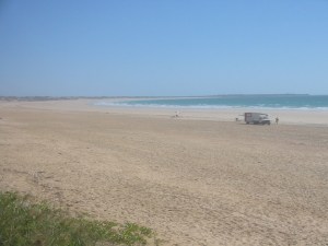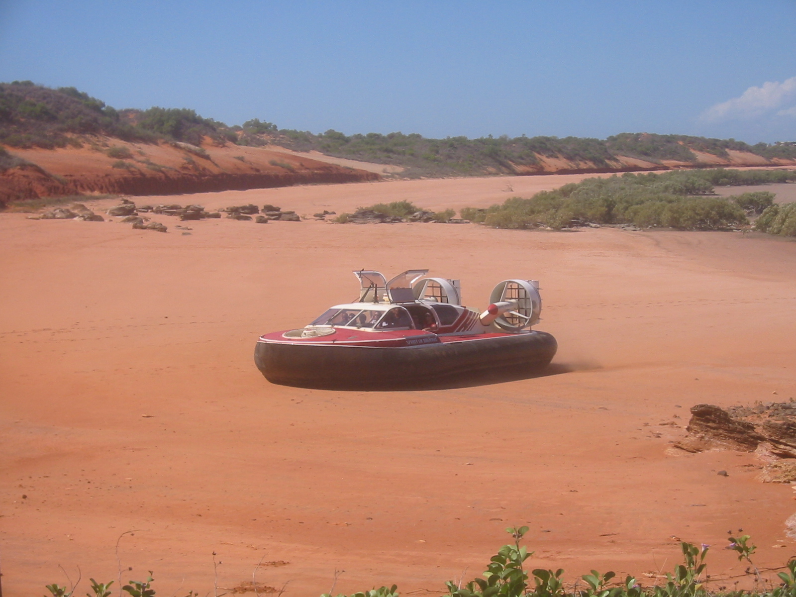 Mit dem Hovercraft gings zu Fussabdruecken, welche die Dinos hinterlasssen haben, quasi die ersten Touris in Broome. Broome selber ist eher verschlafen und klein(dafuer ist der Flughafen mitten im Ort), um halb 6 am Abend werden die Gehsteige aufgerollt, klingt bisserl wie Muehlviertel…, Cable Beach ist dafuer ein netter Sandstrand, nicht gerade ueberlaufen wie man sieht.