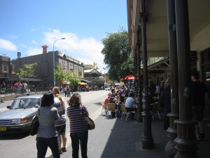 Freemantle hat auch eine andere Sehenswuerdigkeit, den Cappuccino Strip, ein Kaffeehaus nach dem anderen……