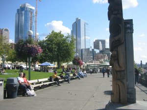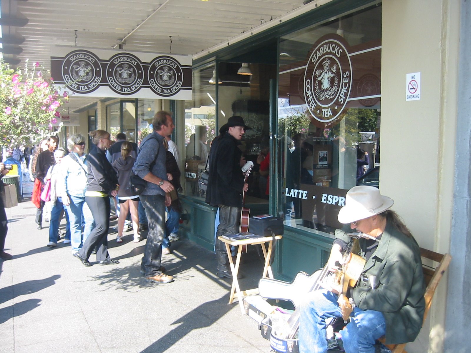 Nach 24 Stunden Anreise samt einem Souvenir aus Wien (schnief, rotzel, hust) war ich heute schon in der „Emerald City“ unterwegs. Die Stadt wirkt im Gegensatz zu anderen Städten sehr relaxt und irgendwie stressfrei. Um den Herren vor dem 1. Starbuck’s handelt es sich leider weder um Neil Young och um Eddie Vedder. War irgendein Folkblues Sänger, der versucht hat, die vielen Leute aus dem Starbucks rauzuspielen, es ist ihm leider nicht gelungen…
