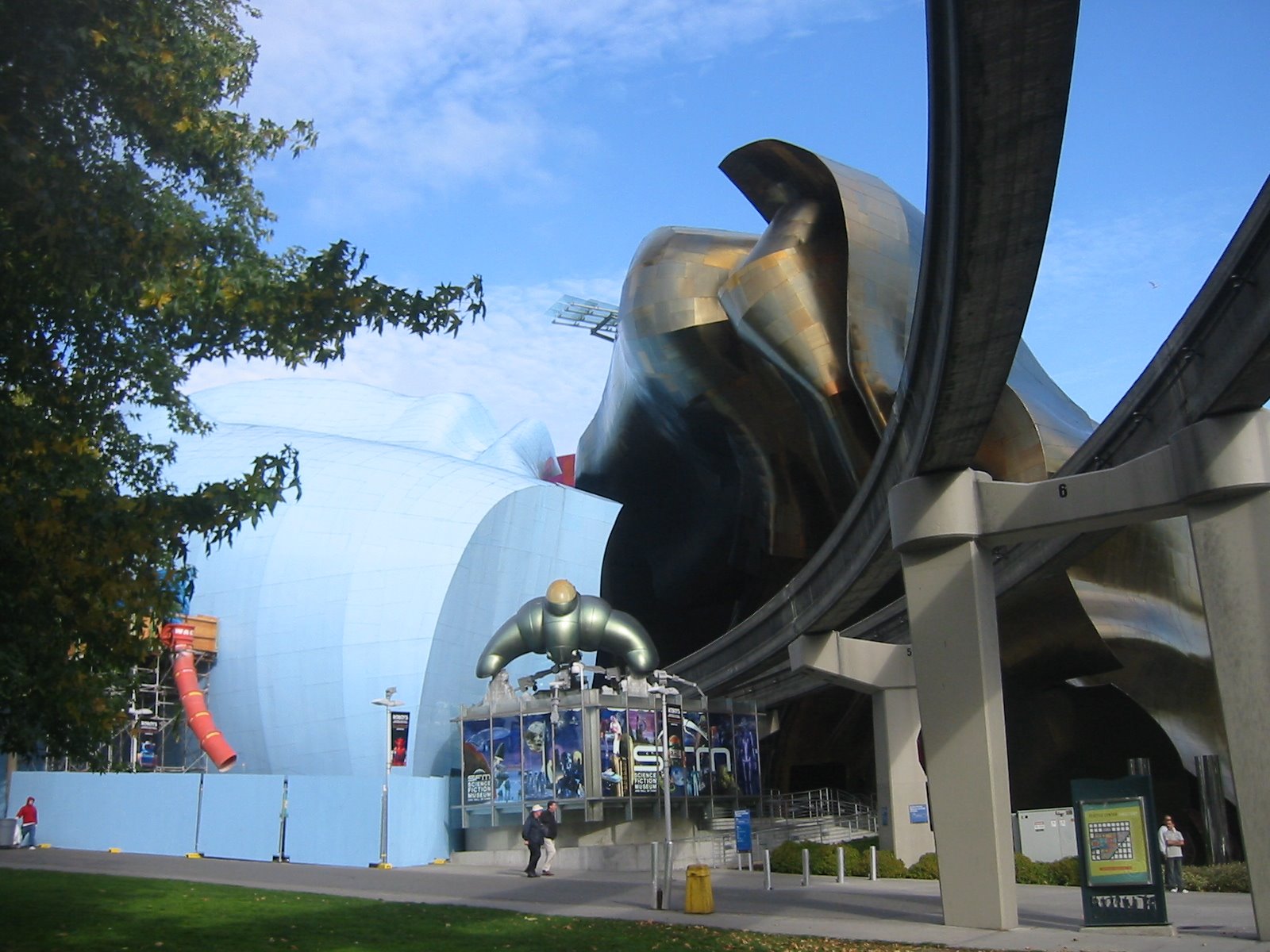 „Seattle Center“ mit seinem futuristischem Science Fiction Museum und dem „Experience Music Project“. Gegründet von Paul Allen, Mitbegründer von Microsoft, Jimi Hendrix Fan und SciFi Requisiten Sammler. Man mag sich das gar nicht vorstellen, dass bei uns einer der Reichen ein Ambros Museum samt Requisiten vom österr. Film gründet….