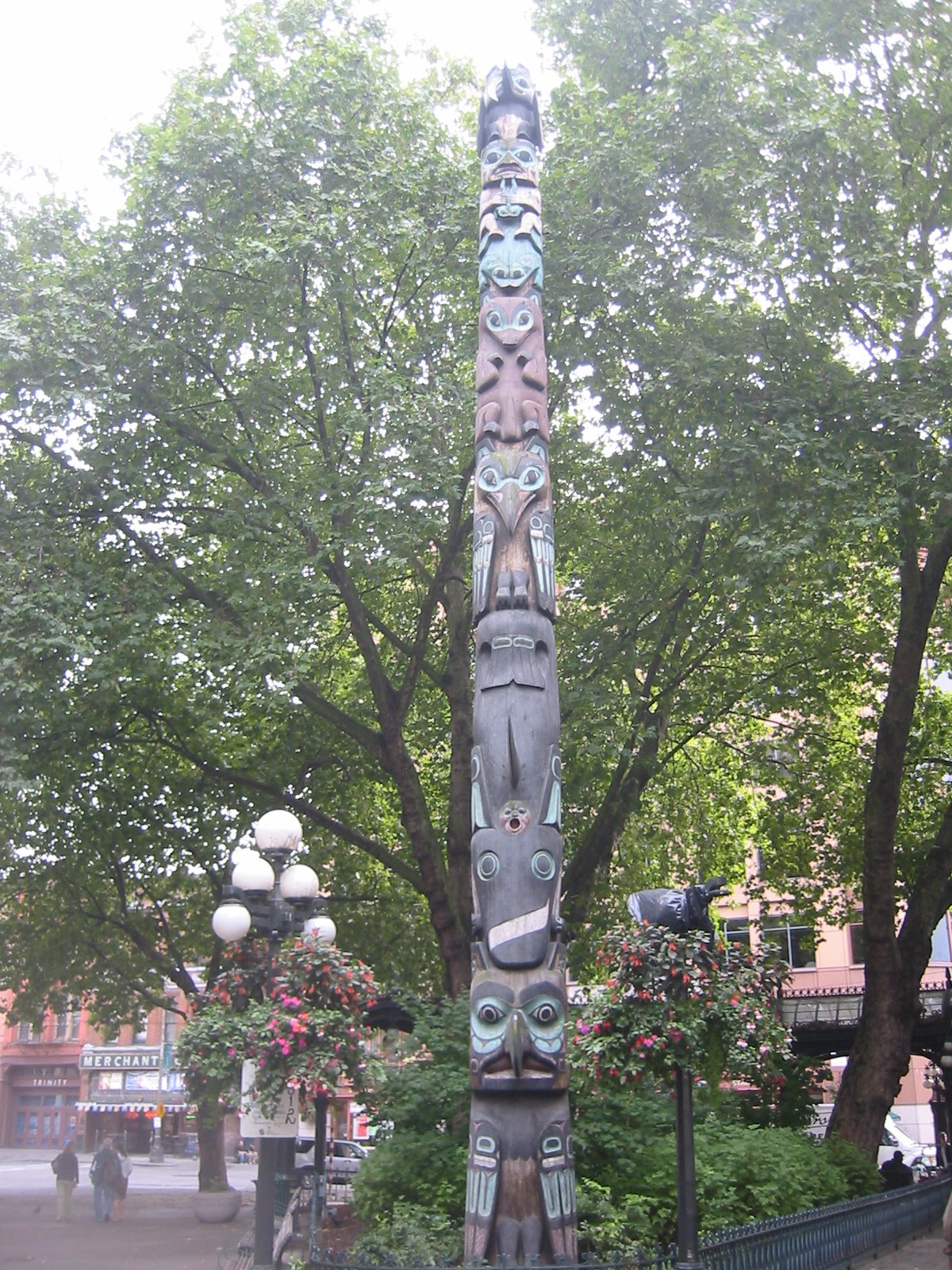 Der Totempfahl kostete der Stadt 10.000 Dollar. Da der erste, den man einem Indianerstamm entwendet hat, (Maibaumstehlen auf amerikanische Art) verbrannt war, verlangte der Indianerstamm 5.000 $. Das war aber der Preis nur für den ersten, für den Ersatz musste die Stadt nochmal ins Börserl greifen.