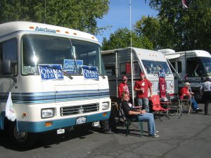 Die demokratischen Footballfans sind auch schon da, noch voller Optimismus vor dem Spiel beim BBQ…