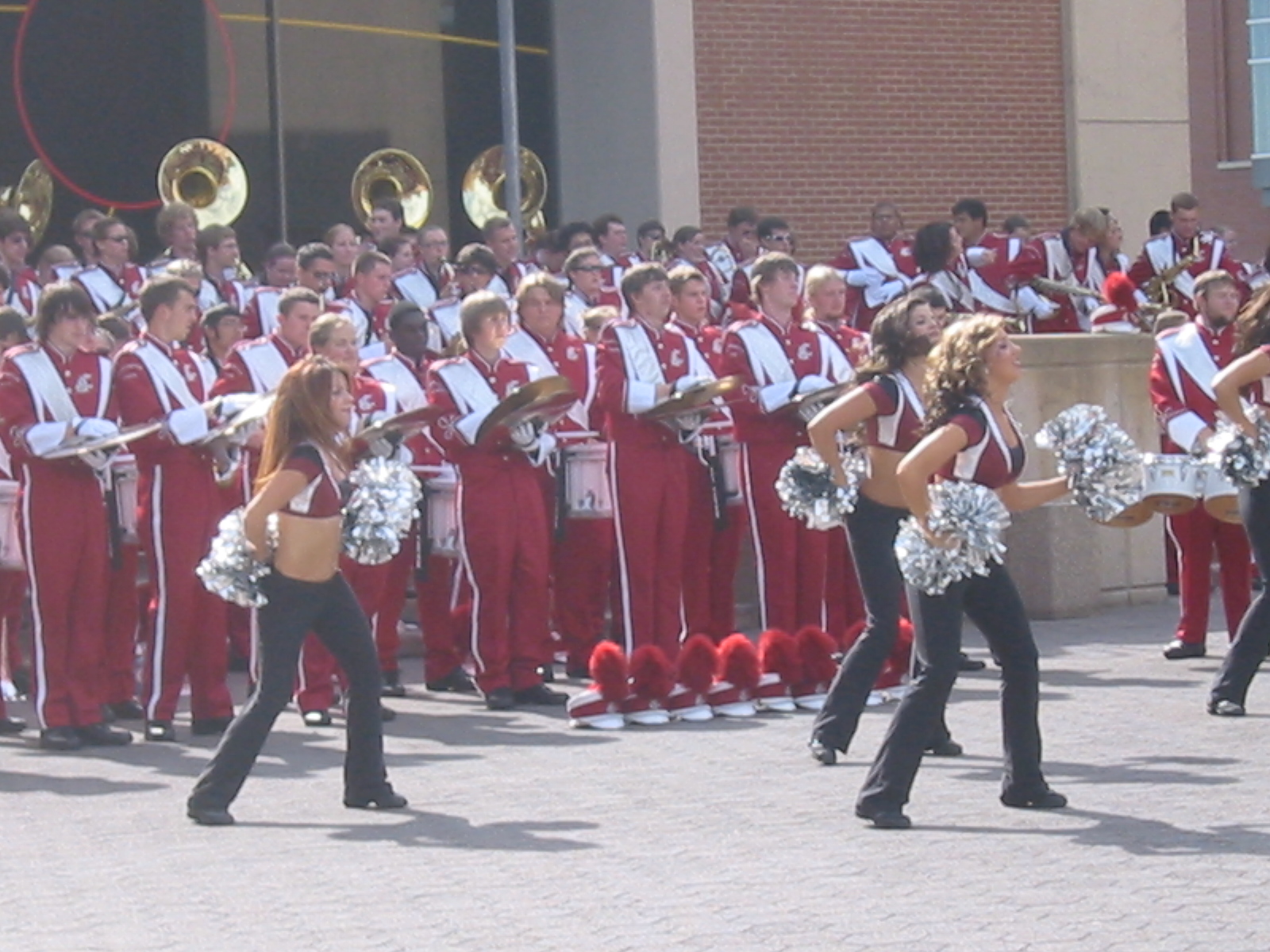 Die Collegeband samt Cheerleader beim Aufwärmen…