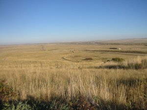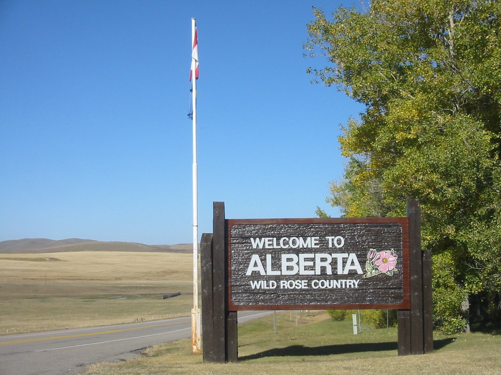 Ein Blick ins Land, Alberta besteht anscheinend hauptsächlich aus Weizenfelder, Weizenfelder, Kuhweiden und Mähdrescher. Und ein super flacher gerade langweiliger Highway zieht durchs Land, wo man mit 110km/h dahinzuckelt..