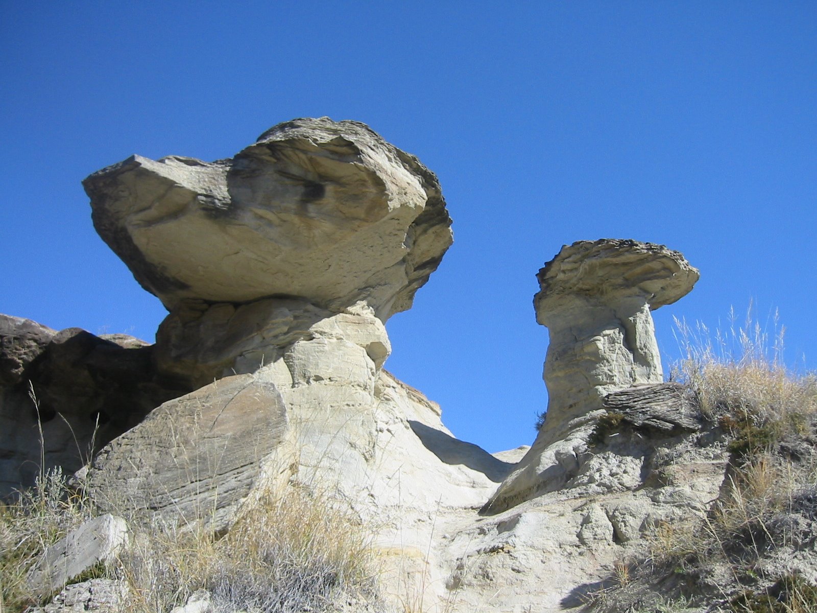 Mitten in den „Badlands“ von Alberta(gegen Alberta ist das Burgenland gebirgig) tut sich diese skurrile Landschaft der „Hoodoos“ auf. Gibt in diesem Gebiet viele Funde von Fossilien. Deswegen lebt die Stadt Drumheller als so ziemlich die einzige Stadt von Dinos. Ob ihnen diese Vermarktung recht ist…?