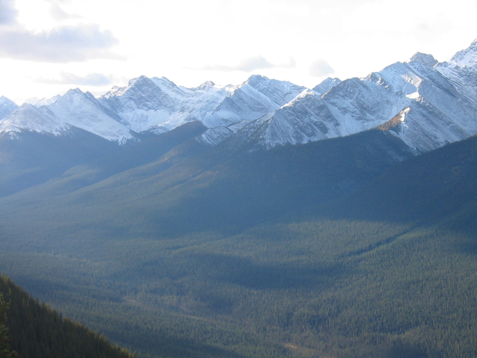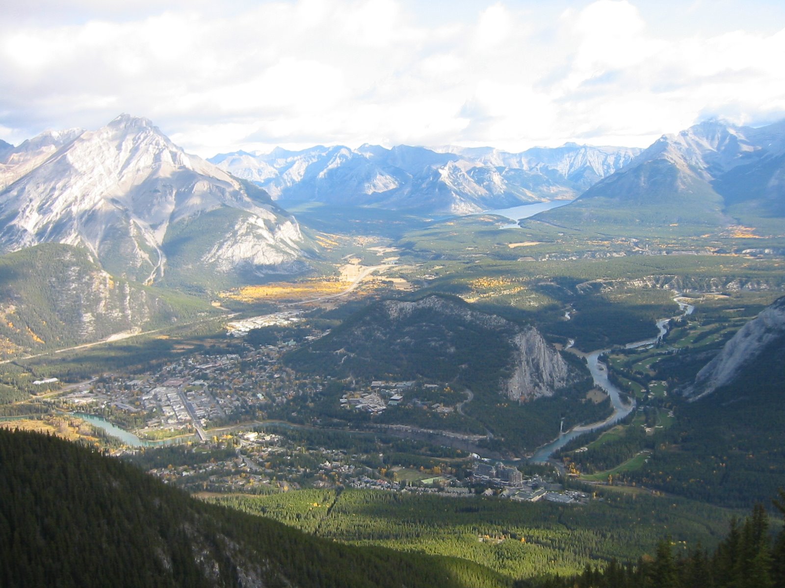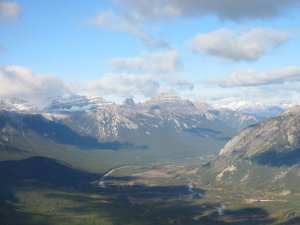 Der Blick von 2200 Meter vom Sulphor Mtn. runter nach Banff(am Vormittag rauf mit einer Gondelbahn). Die anderen Bilder zeigen die eindrucksvolle Nachbarschaft der Rockies.
