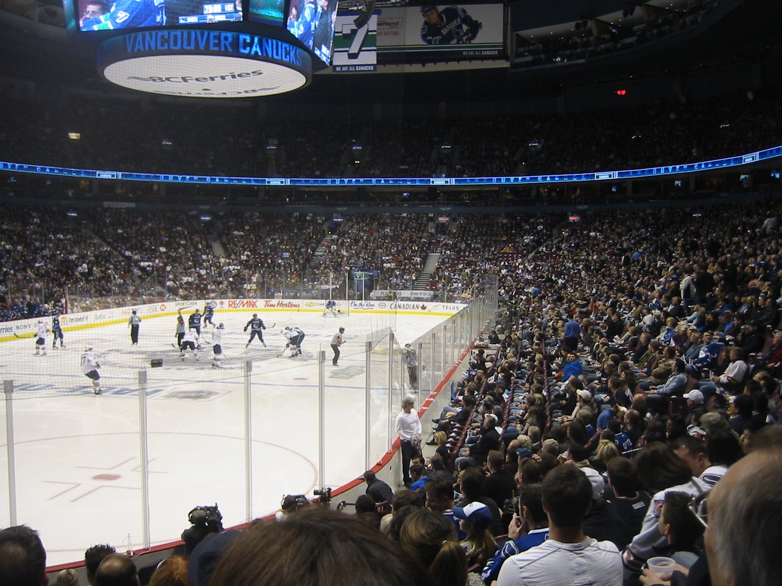 So ich bin wieder am Pazifik, zur Feier des Tages gabs gleich das Match der Canucks gegen die Ölarbeiter aus Edmonton. Und natürlich war die Halle ausverkauft mit über 18.000 Hockeyfans(die noch mehr Stimmung machen als die Flamesfans). Und der Kassier kann sich freuen, kann er doch zum 217x das „Ausverkauft“ Schild hinhängen bzw. hängen lassen für gleich für Dienstag…