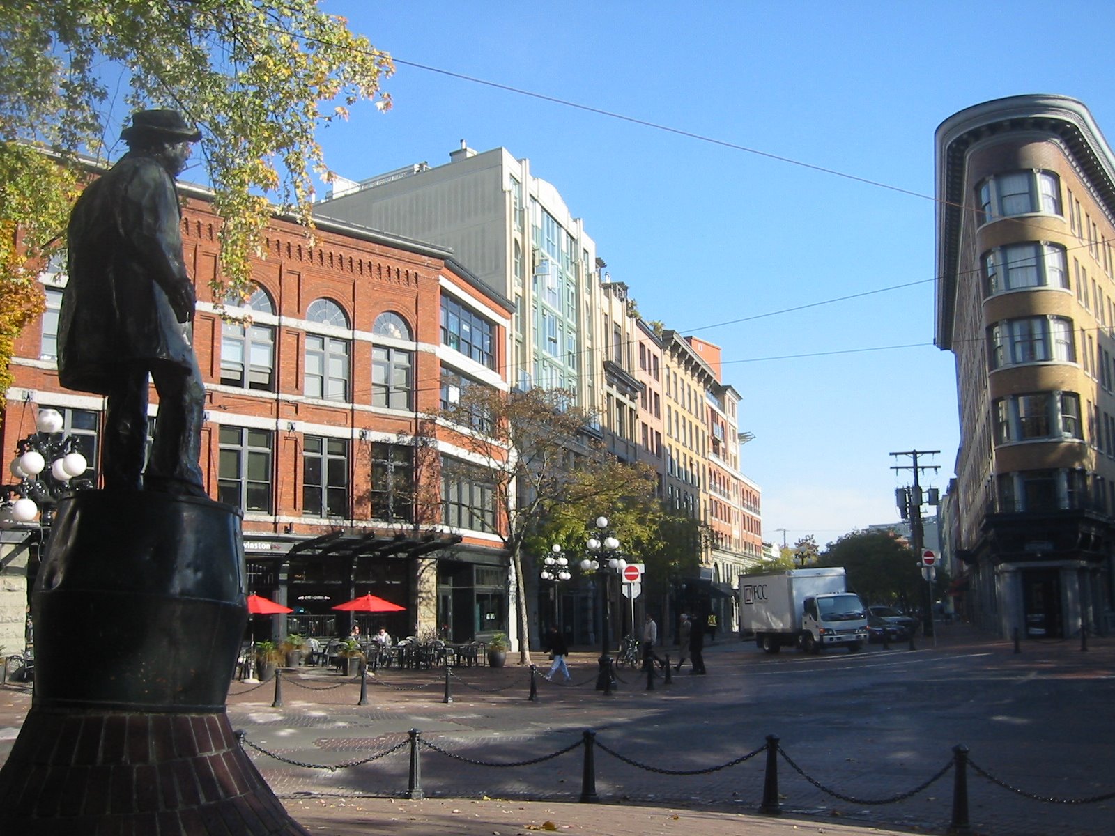 Gastown, so der inoffizielle Name von Vancouver(Granville war der offizielle) am Anfang der Gründung, und das was von der „Altstadt“ noch über ist, im Vordergrund die berühmte Uhr mit Dampf betrieben..