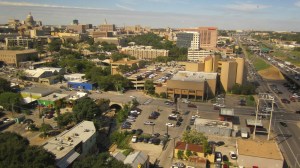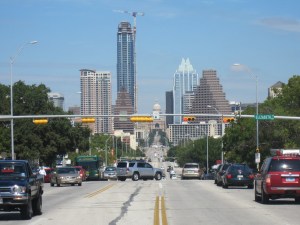 Blick vom Hotel auf Austin, links die große Kuppel, das Captiol. Da hat er üben dürfen, der Georg W., 5 Jahre lang.