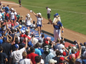 Maskottchen und „Cowgirls“ tanzten schon zu „Deep in the Heart of Texas“ und die Menge wollte gratis Bälle ergattern