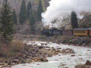 Von Durango gehts in die Wildnis der San Juan Berge. Mit dem Zug, der früher Minenarbeiter, Glücksritter und andere Personen, die man braucht, damit es genug Abwechslung vom harten Leben in der Einöde gibt, nach Silverton auf gute 3.000m Hoehe bringt.