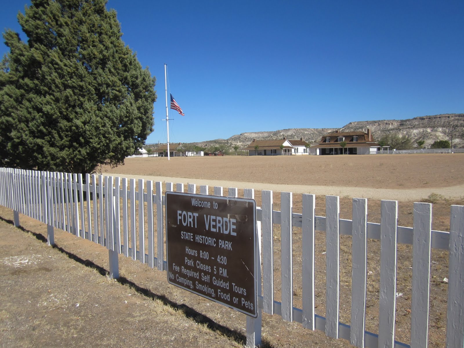 …und zwar von hier, Fort Verde. Keine Pallisaden, kein Wachturm. Das mühsam erworbene Wissen von ca. 200 Western wird in damit gekübelt. Apachen u.ä. waren klug genug, solche Orte nicht anzugreifen. Die haben sich lieber auf die Wildnis konzentriert. Somit haben Forts im Wilden Westen in etwa so ausgeschaut.