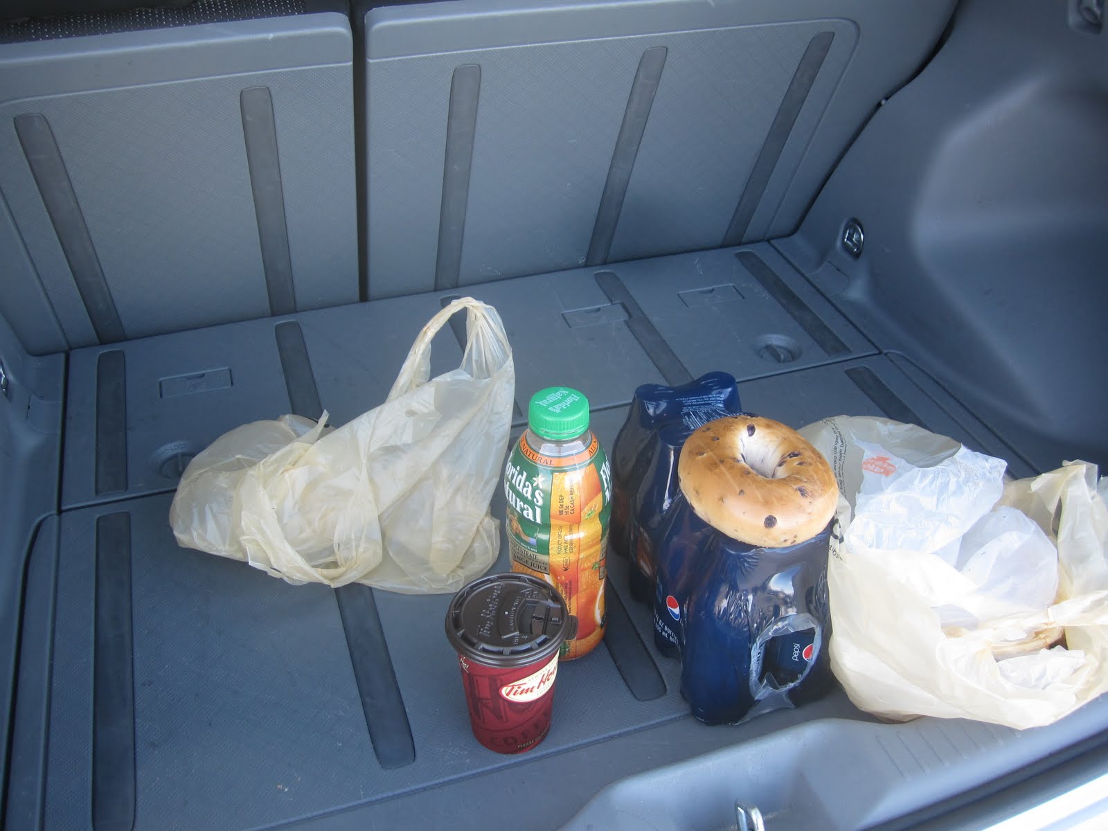 Mein Tailgating Frühstück. Kann zwar nicht mithalten mit den Profis und deren Ausstattung, aber das Notwendigste ist dabei. Vor allem: Kaffen von Tim Horton’s.