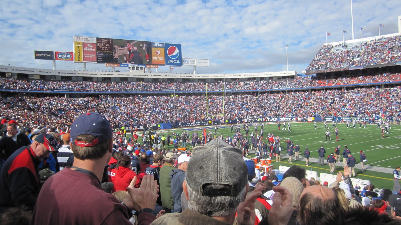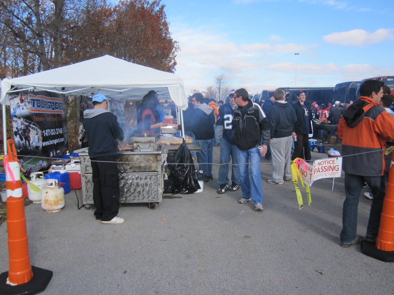 Uhrzeit: 10.45. Vormittag. Und schon wird gegrillt, Hotdogs, Hamburger etc. Und das eine oder andere 6Pack vernichtet. Auch viele Fans aus Kanada sind mit einer Busflotte angereist um die Buffalo Bills live und hautnah zu sehen. Das Tailgating gehört natürlich zum Football dazu.