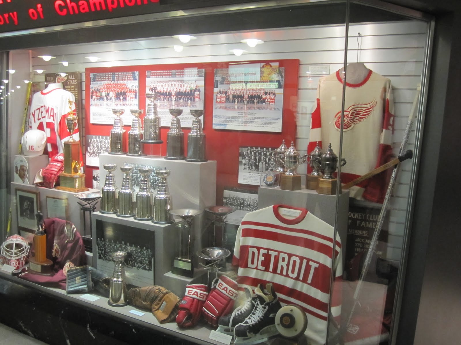 …und deswegen Hockeytown. 11 Stanleycup Fahnen sprechen für sich.