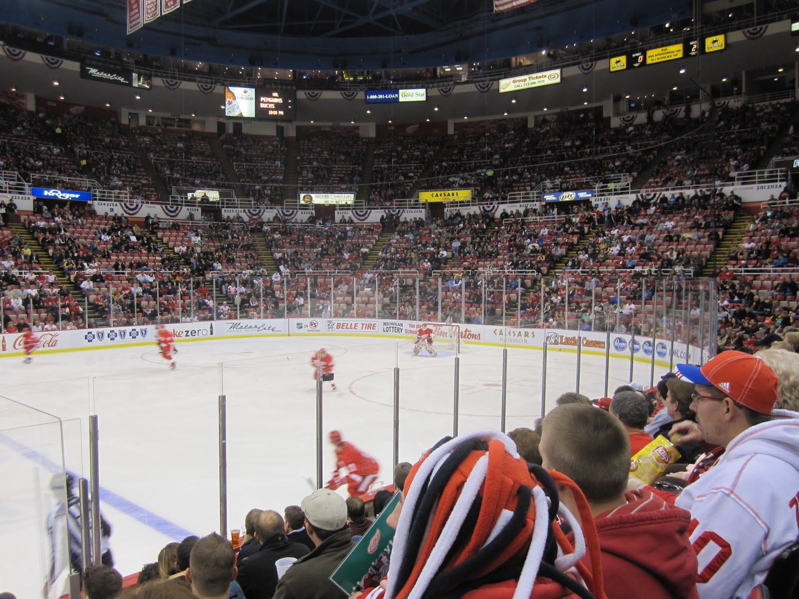 Im Gegensatz zu vielen Hallen macht von auf Detroit auf altmodisch, aber dafür mit Atmosphäre. Ein fast 90jähriger Hallensprecher samt Orgelspieler sorgen noch für lassen zeitweise die alten Zeiten wiederaufleben….