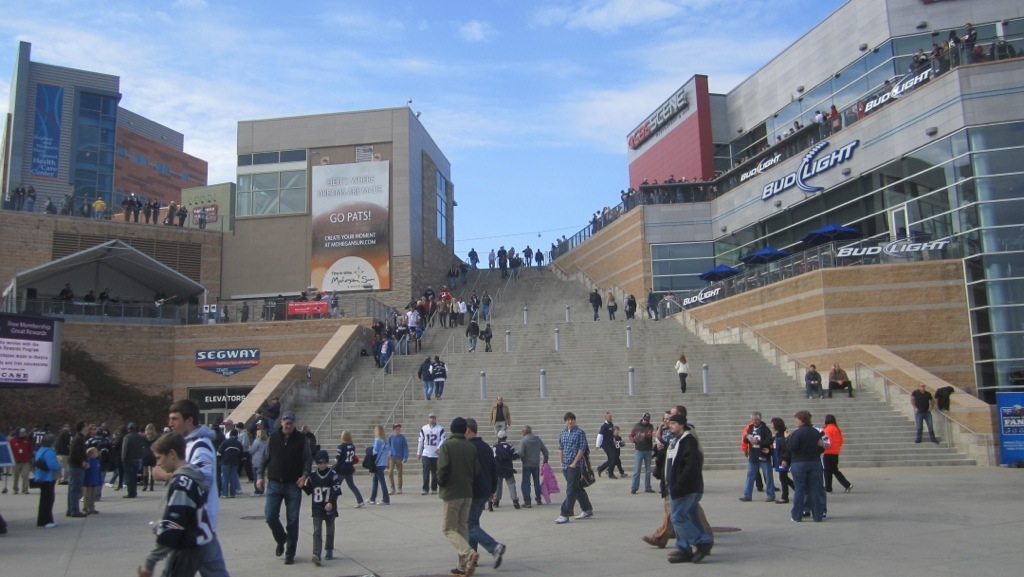 Während bei uns über Stadionumbauten, welche jahrelang dauern, hat man sich hier im Niemandsland von Massachusetts ein Schmuckkästchen hingestellt, gegenüber hat man nochneine Shoppingmall samt Klinik und Kinokomplex errichtet.