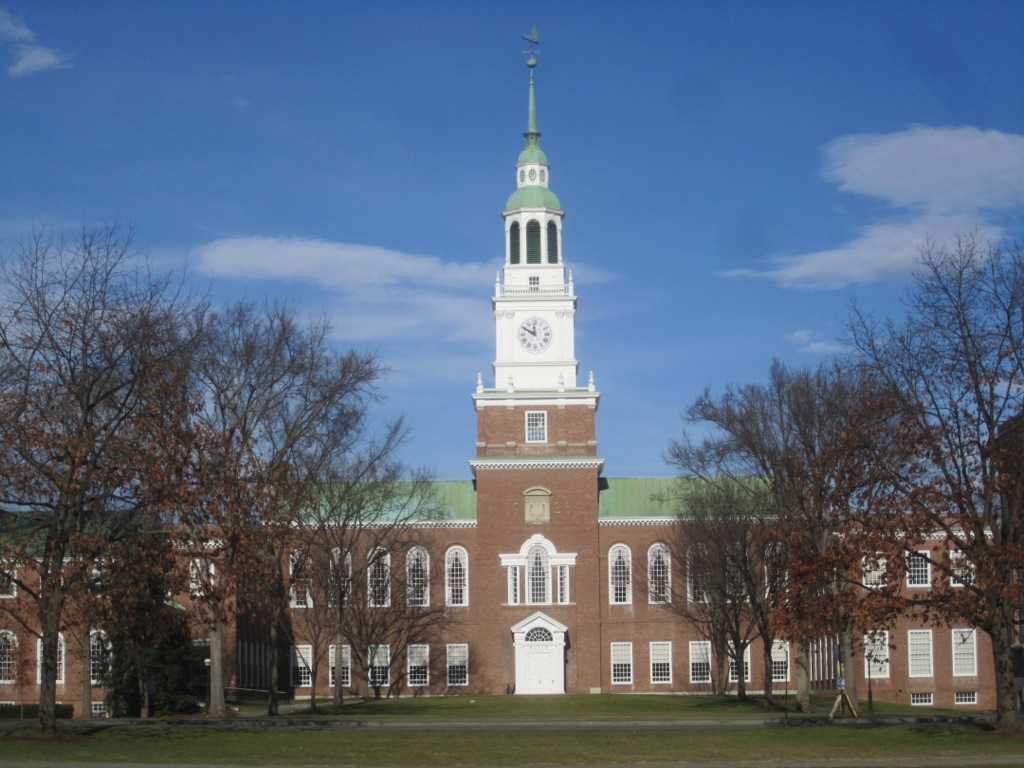 Die Dartmouth Hall des Colleges, gegründet 1769, die letzte Uni unter britischer Krone. Heute eine der Eliteunis der Ivy League.