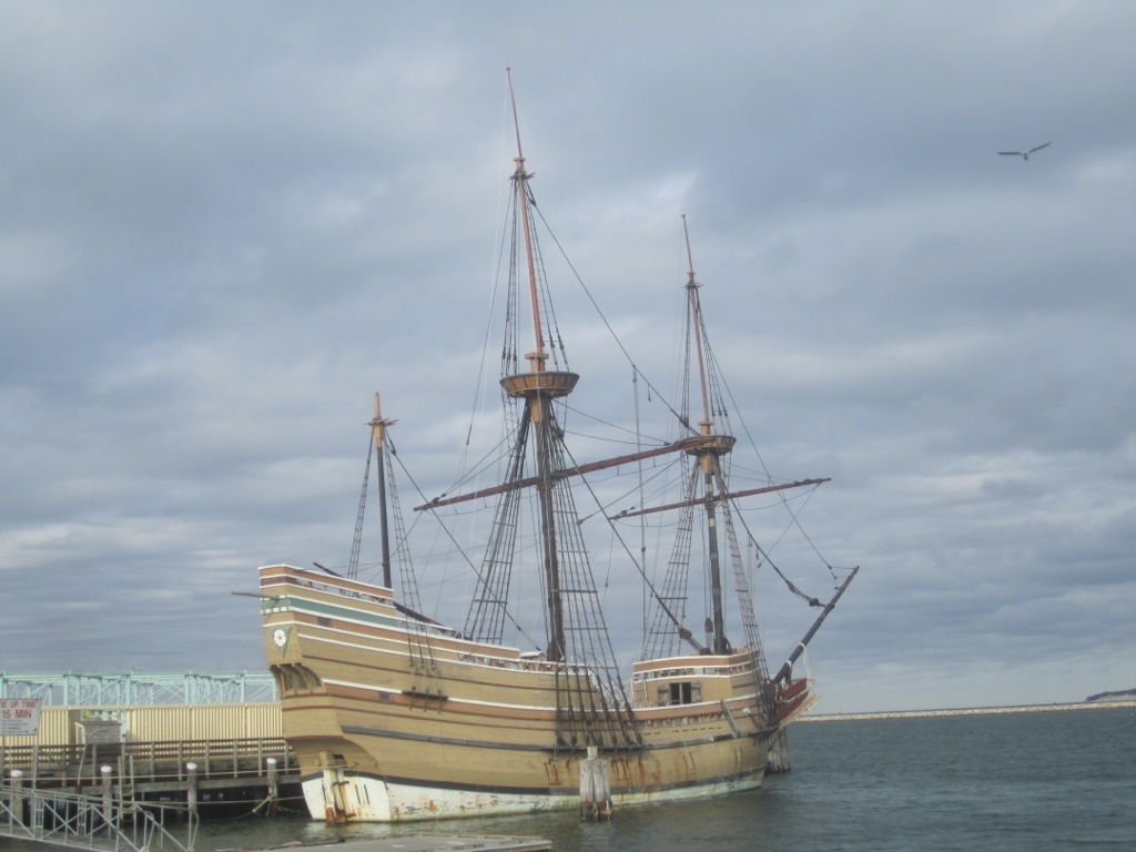 Ein Nachbau der Mayflower steht im Hafen bereit, nachdem das Betvolk abgeliefert wurde, mußte man dringend zurück nach England, etwas Unaufschiebbares. Die Crew soll sehr erleichtert gewesen sein…