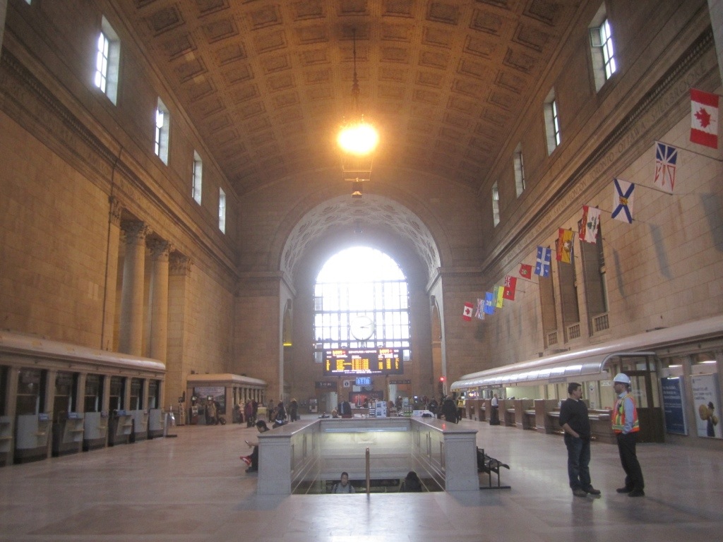 Die Union Station, für viele Einwanderer der erste Eindruck von Toronto, vermittelt gleich die Größe des Landes. Von der war sogar der britische König beeindruckt, daß die Herrschaften in den Kolonien auch andere große Hallen bauen, die nicht der Gottesverehrung dienen….