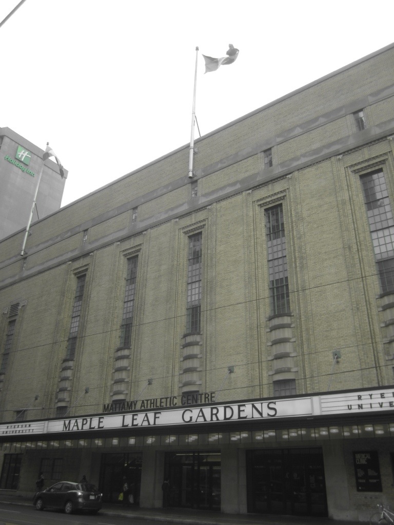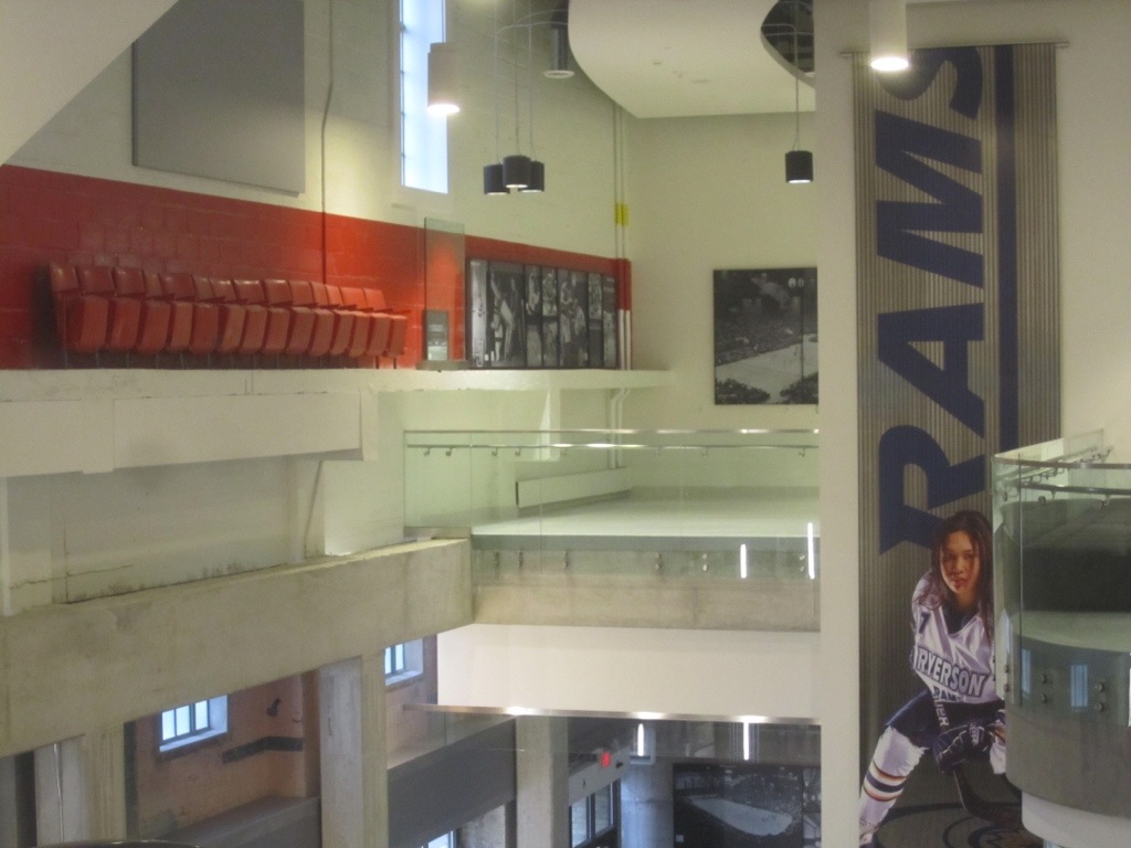 Zurück in Toronto und gleich zu Beginn quasi ein Wallfahrtsort für jeden Hockeyfan: der legendäre Maple Leafs Garden, Heimstätte der Leafs bis 1999 (und Muhammed Ali und ein gewisser Herr Presley sind da aufgetreten. Heute Sportheimstätte der Universität. Als Erinnerung hat man eine original Sitzreihe an ihrem angestammten Ort belassen, auch die rote Wand gehört dazu…