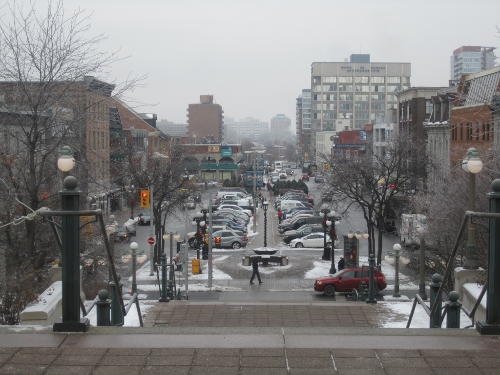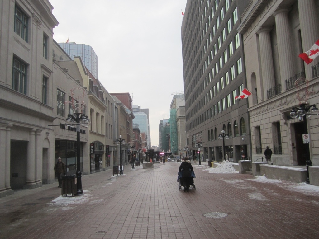 Nach den Metropolen Montréal und Toronto ist Ottawa am ersten Blick eher die graue Maus (wie die hiesigen Senatoren am Eis). Eher wenig los, gegen 6 macht viel zu, Beamte verlassen die City Heim nach Suburbia. Die Fußgängerzone eher bescheiden…