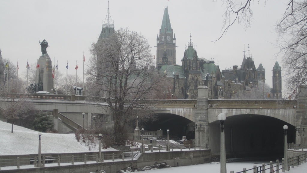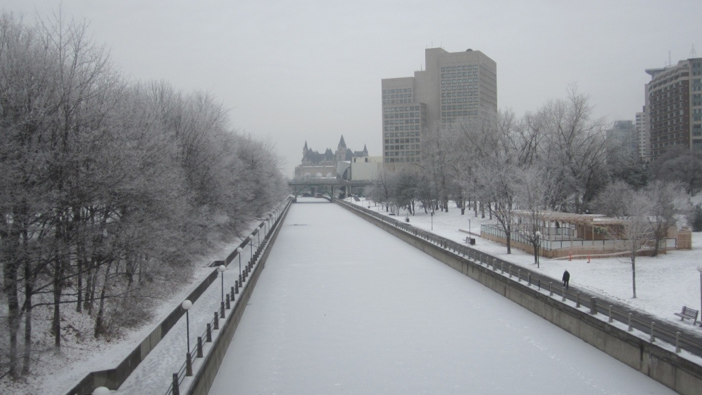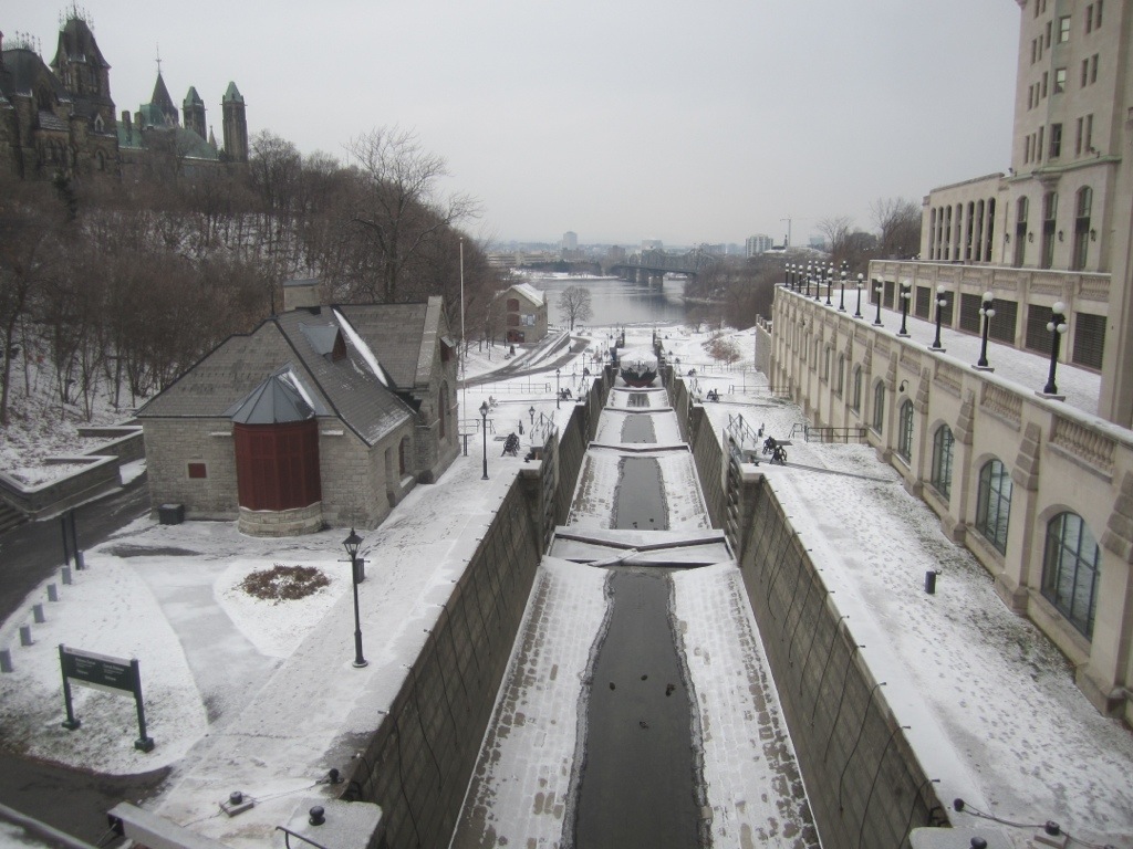 Heute die große Überraschung die Stadt hat das Winterkleid angelegt, schon beim Rideau Kanal, wieder ein Überbleibsel der Angst vor den Amis, daß die die St. Lorenz Strom lahmlegen, und man somit einen 2. Wasserweg brauchte, um die Städte zu versorgen.