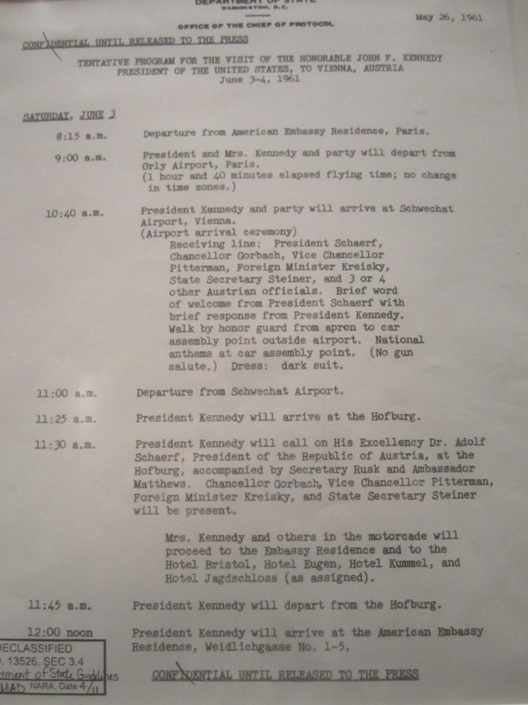 Seine Dispo für den Wien-Gipfel, viel Zeitreserve war da nicht, da hat sich der Schärf kurz halten müssen am Flughafen, keine Zeit für ein Begrüßungs Schnappserl oder gar ein Achterl mit Pittermann und Kreisky.