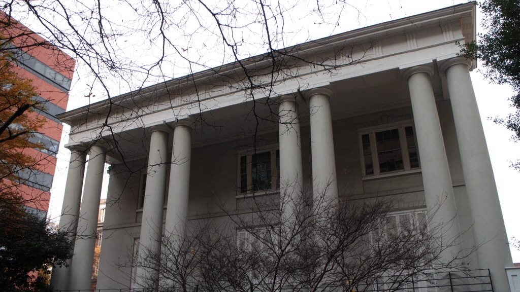 Einig wenige Bauwerke haben den Krieg überlebt, hier das Washington Denkmal, unter ihm wurde Davis seinerzeit angelobt.