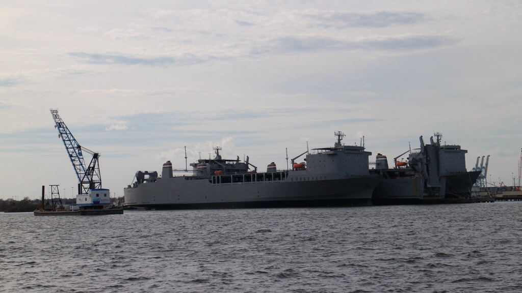 Aber nicht nur die Marine nützt Norfolk als Hafen, auch als Containerumschlagsplatz der tiefe Naturhafen am James River beliebt…