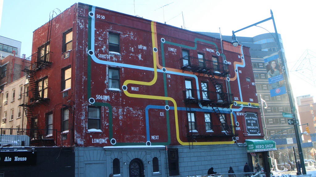 Hier handelt es sich um ein Parkhaus, beschriftet mit einem Gedicht.