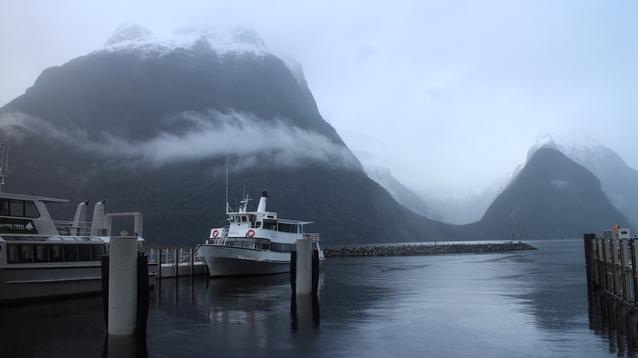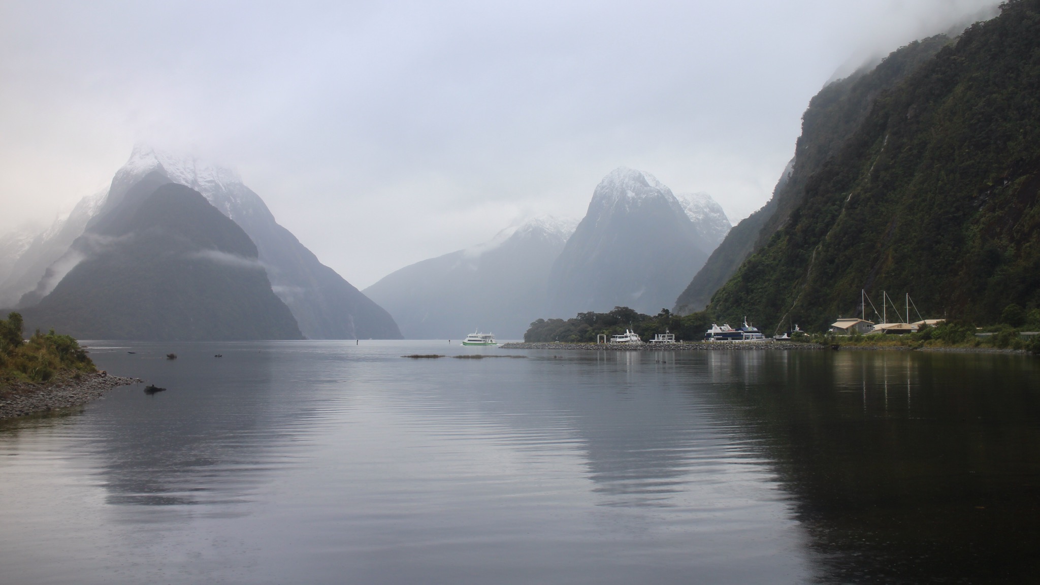 Die Boote bleiben an Land, kein Cruise heute, um 12 wird der Paß geschlossen, man erwartet zu viel Schnee und hat Angst, daß Lawinen runtergehen.