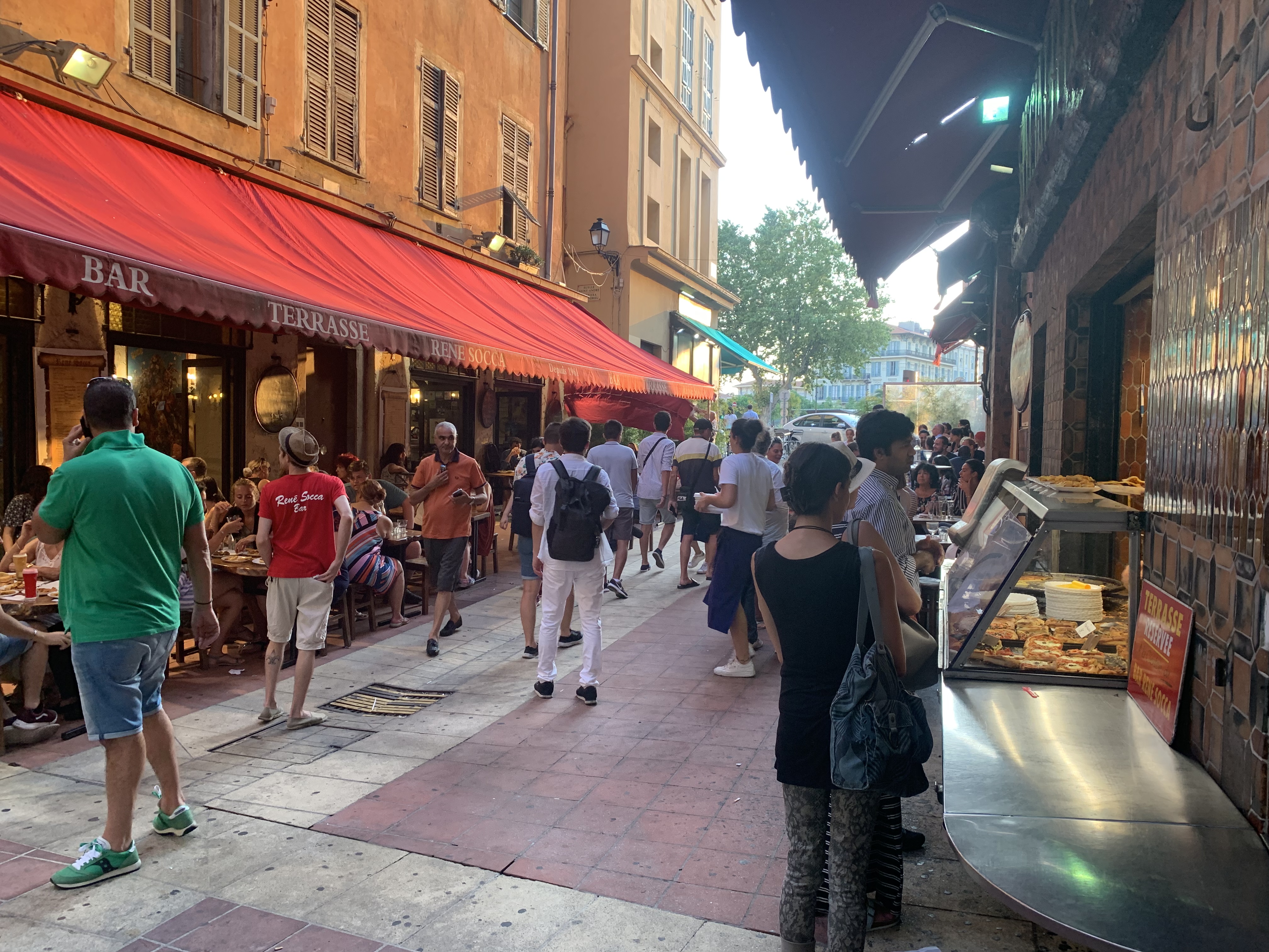 Crêpes aus Kichererbsenmehl, ein Essen der Werktätigen, deswegen auch gut. An Abend entwickelt sich die komplette Altstadt zu einem kompletten Gastgartwn von gefühlten 1000 Restaurants. Wie hier am Markt.