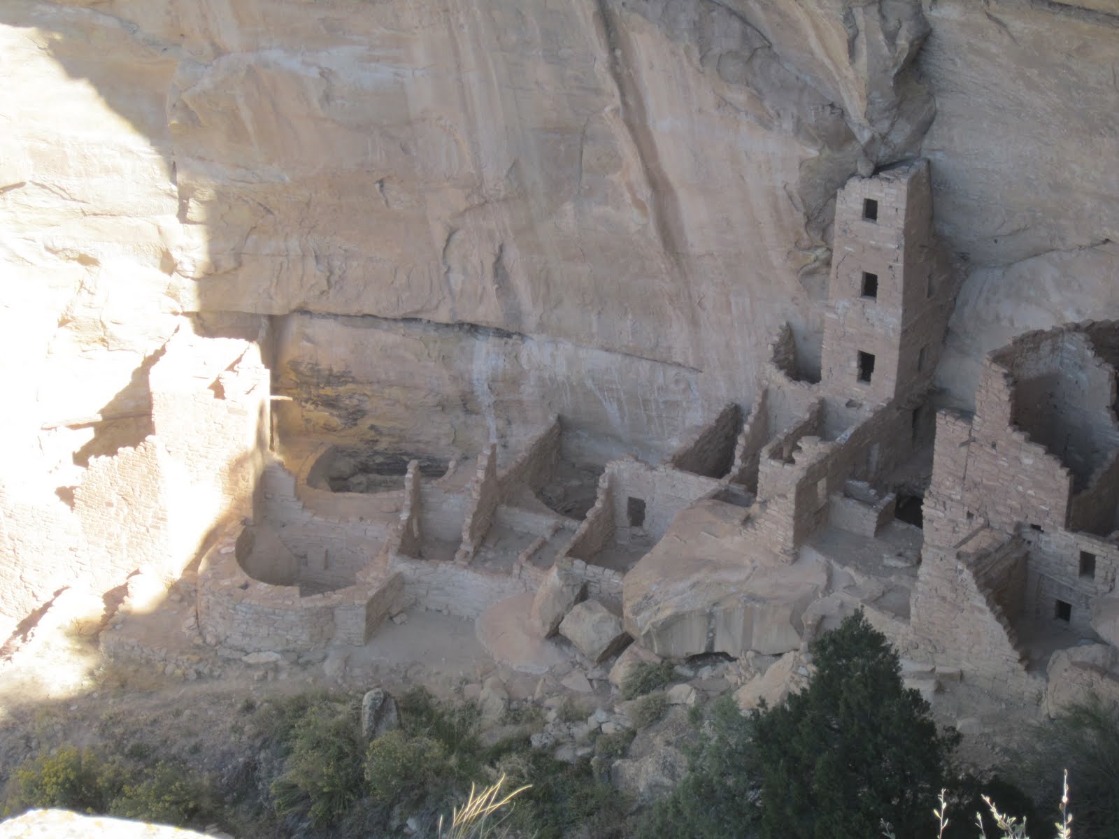 Montezumas Castle, benannt von unseren Hispano-Austros, weil die sich nicht vorstellen konnten, das wer anderer als Azteken sowas bauen könnte. Das Pueblo war schon gute hundert Jahre vorher verlassen worden, Gruende unbekannt, und warum die Sinauga ohne bekannte Feindeinwirkung in den Kalkstein gezogen sind, weiss man auch nicht. Dauerte aber wieder gute 300 Jahre bis man sich wieder diesen Ruinen erinnerte und vorbei schaute…