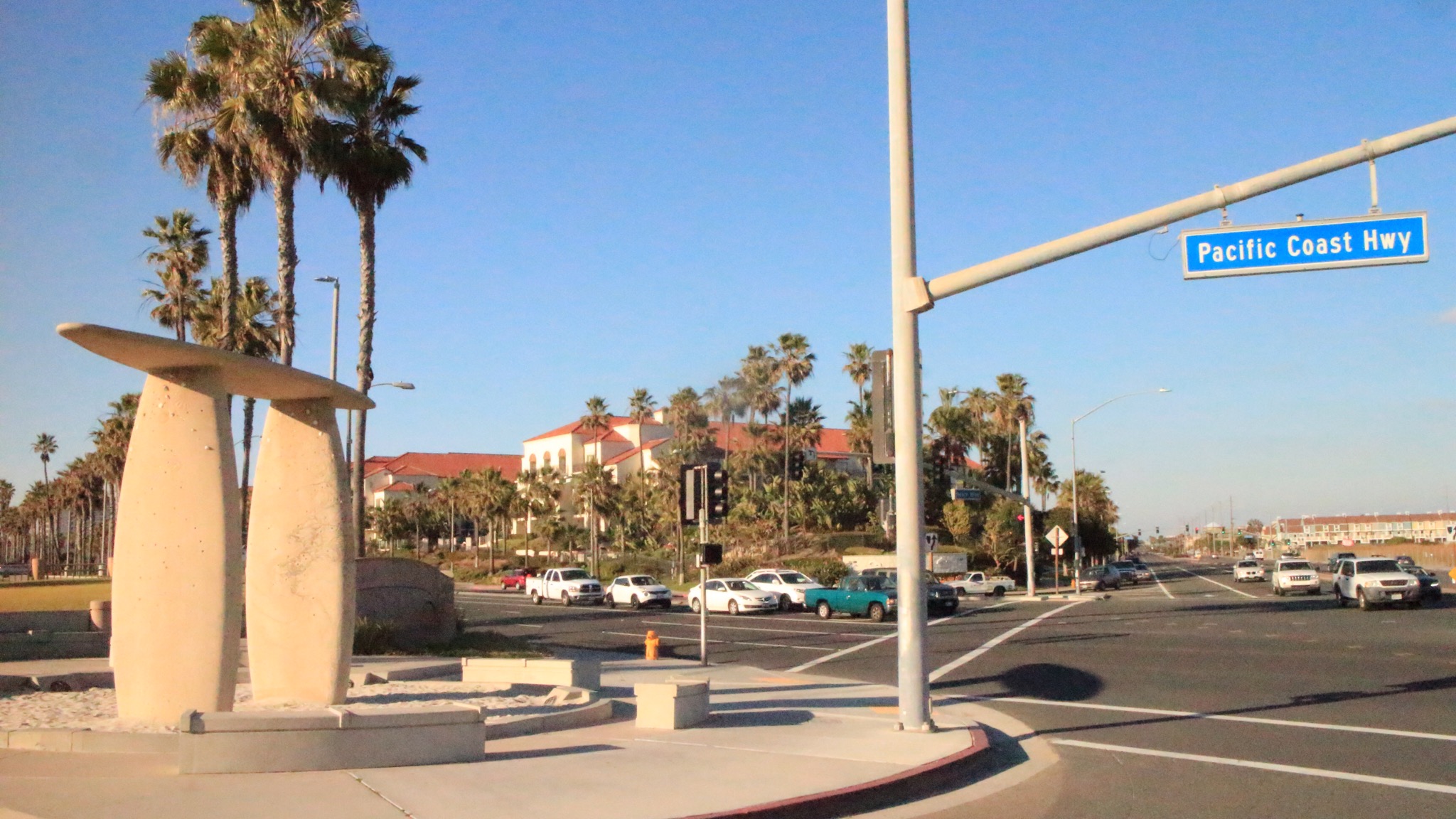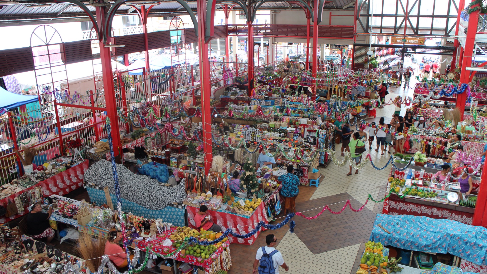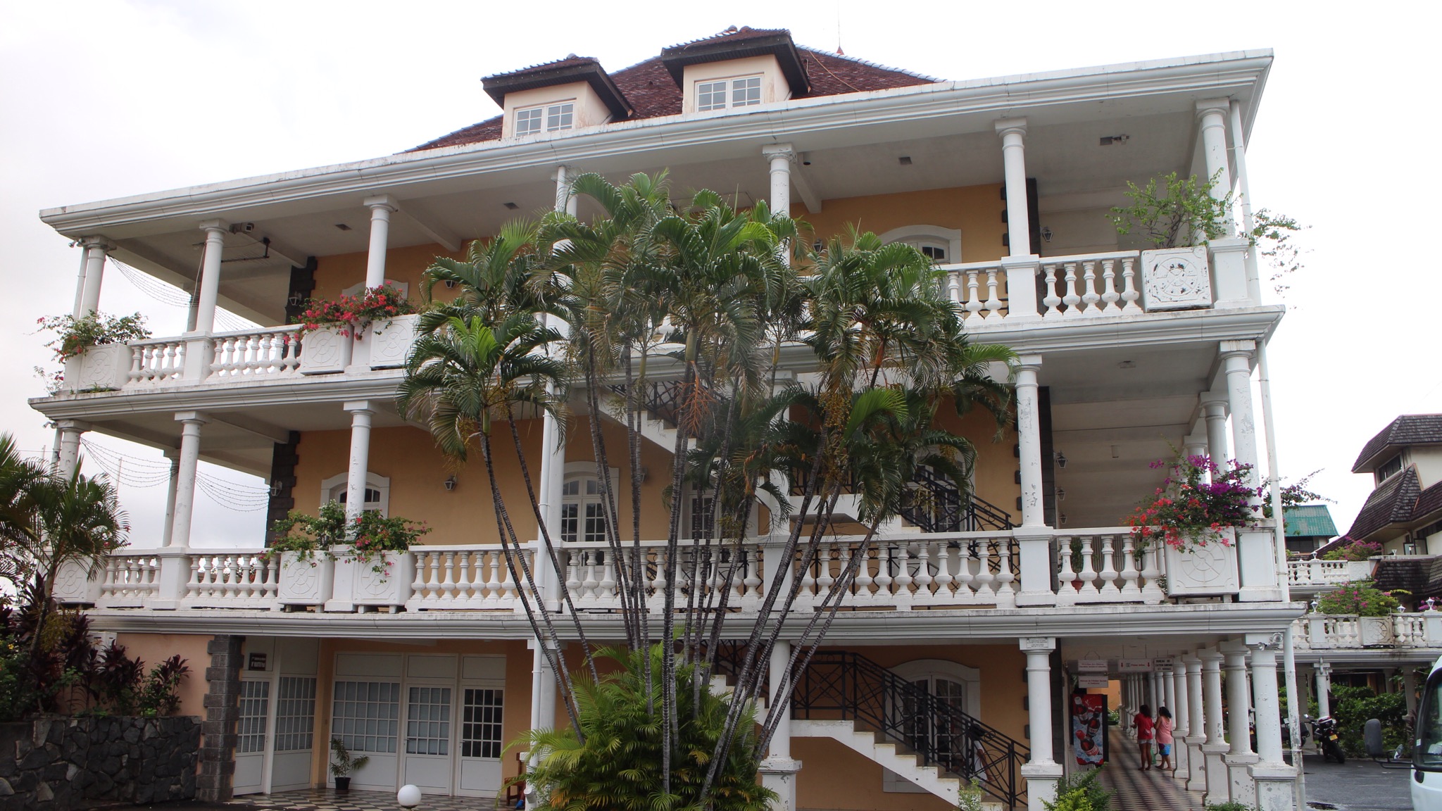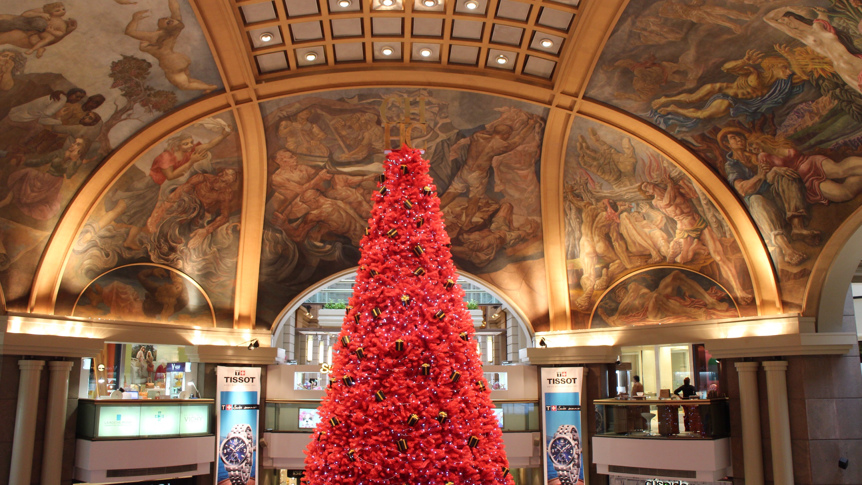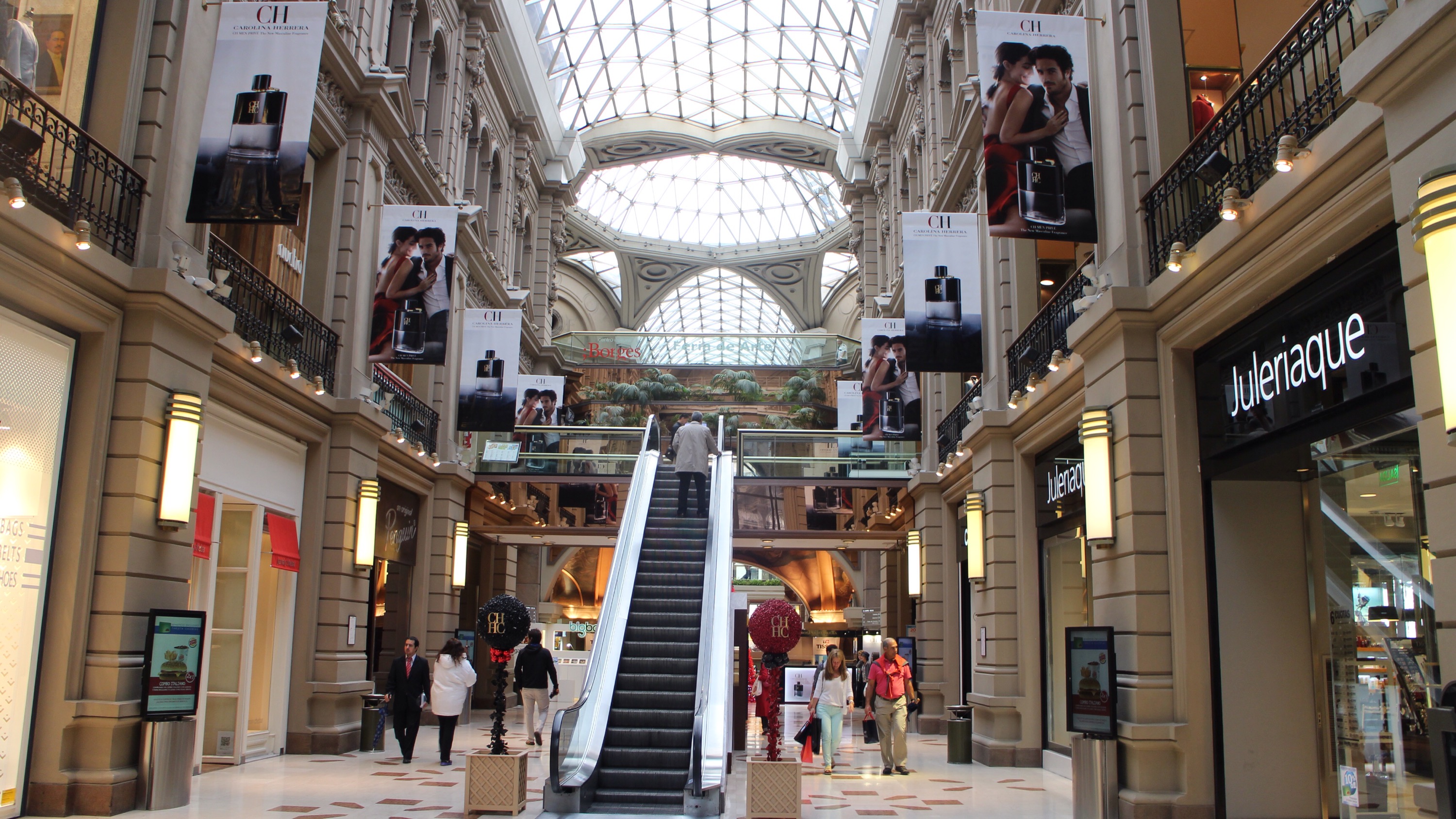 Der Eingang in die teuren exklusiven Pazifik Galerien. Im Mittelpunkt die Fresken am Dach….