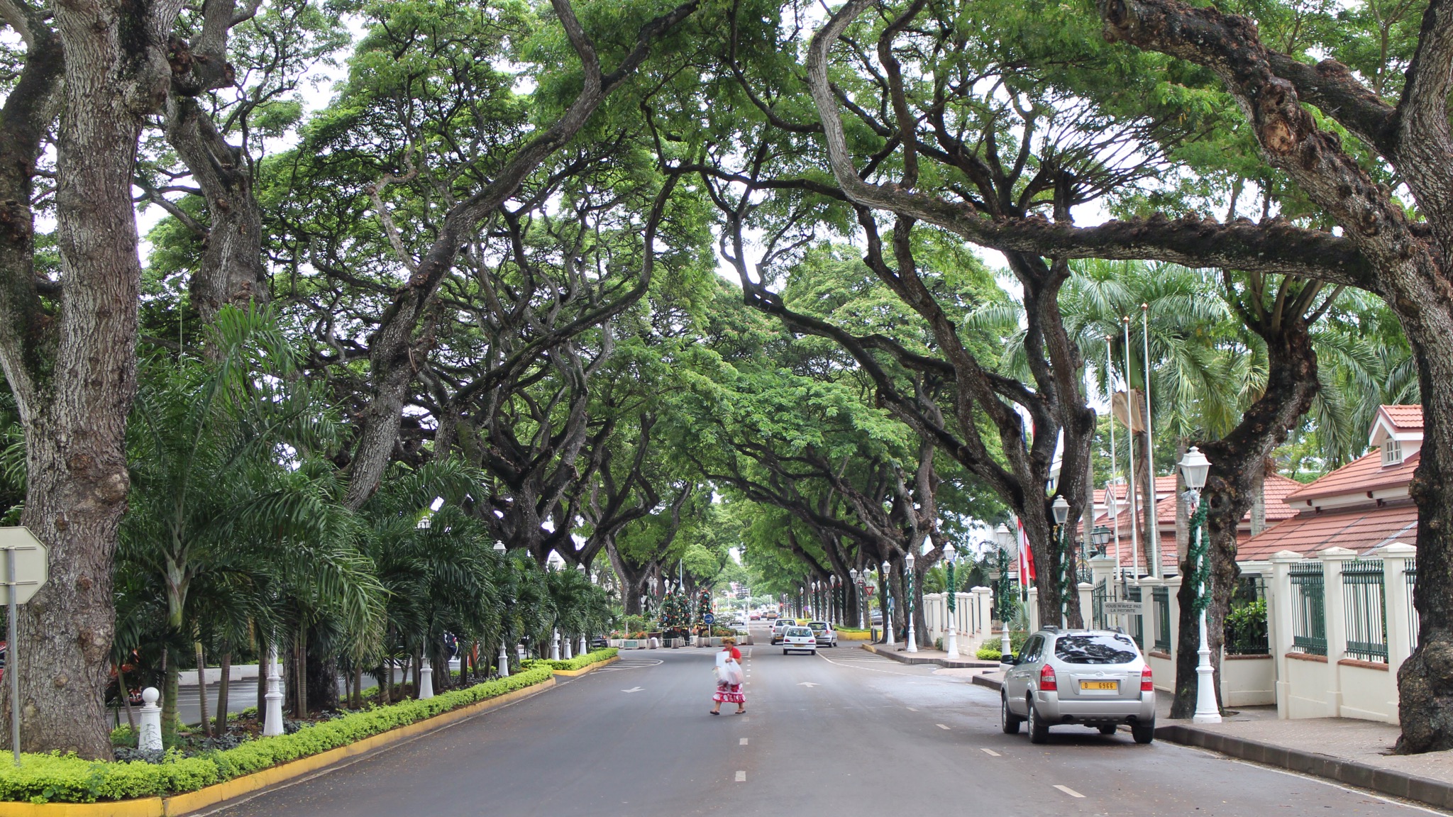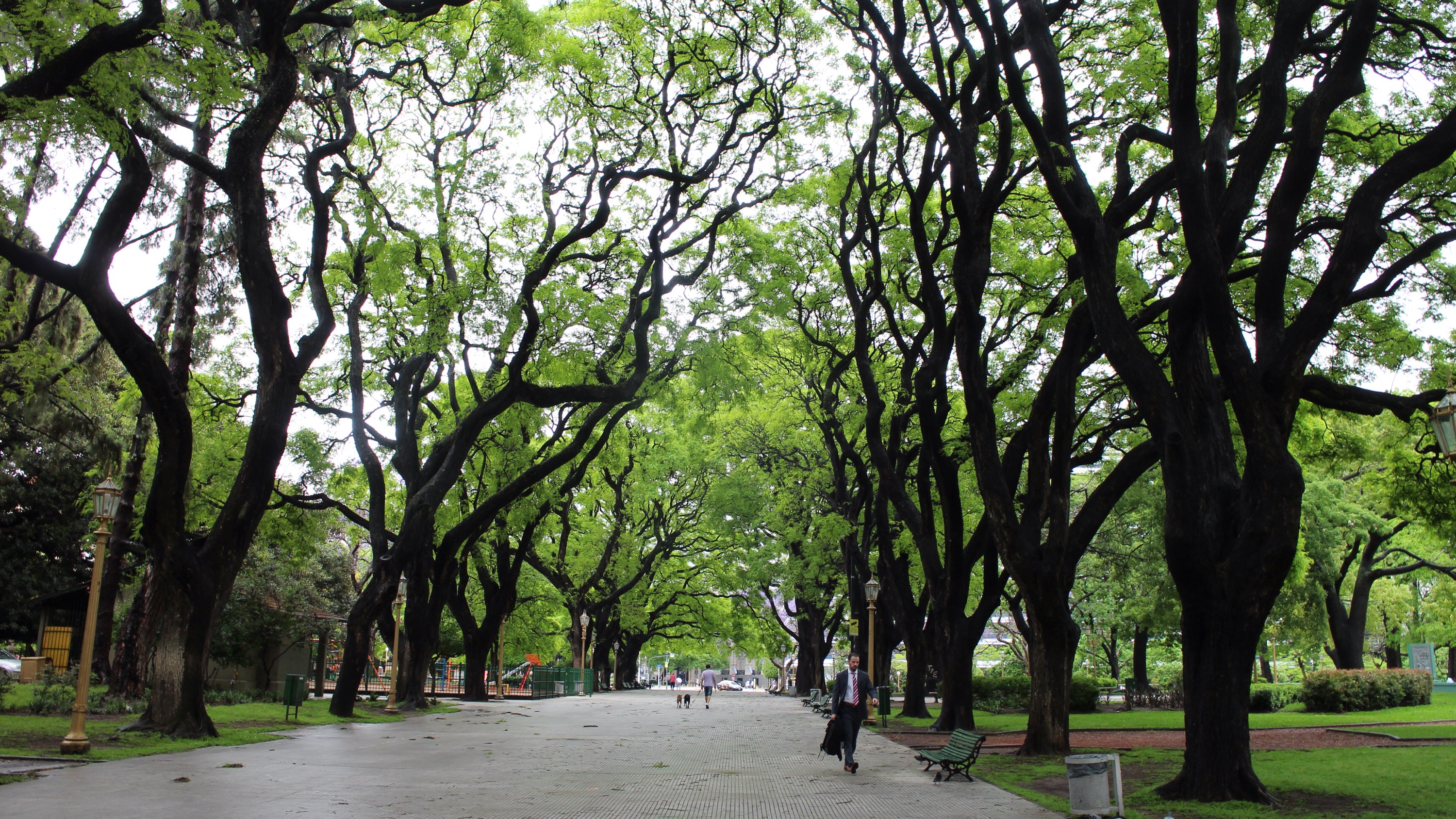An den schattenspenden Parks fließt der Verkehr der Metropole vorbei.