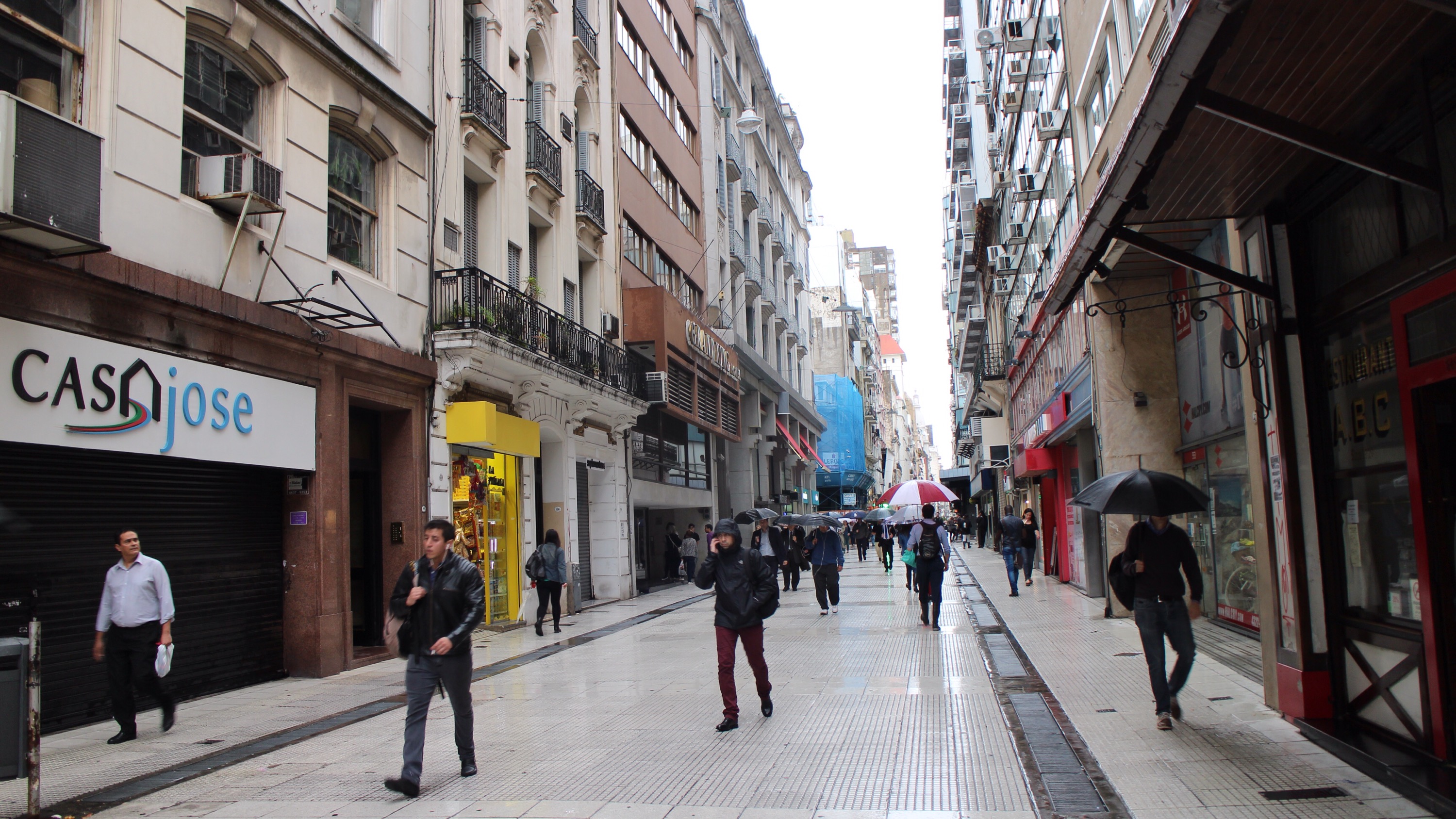 Eigentlich liegt Buenos Aires quasi gleich in der Nachbarschaft von Wien, es dauert genau 24 Stunden von Tür zu Tür. Jedenfalls lassen es die Portenos ruhig angehen, das war um 9 in einer Geschäftsstraße.